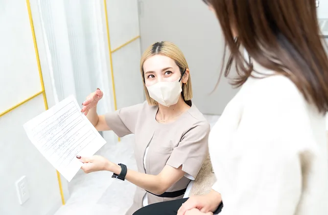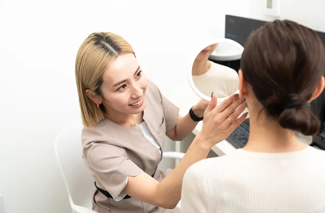 お肌の状態を一緒に確認しながら、ご希望やライフスタイルに合わせて施術方法や費用をご説明します。効果だけでなく、リスクや注意点、ダウンタイムについても誠実にお伝えします。